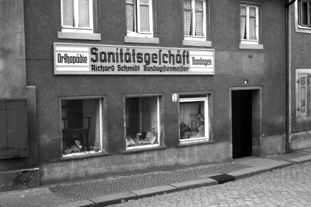 - 1937 Umbenennung in „Sanitäts- und Korsettgeschäft Schmidt“